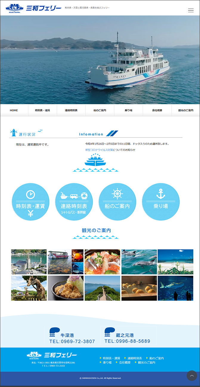 「三和フェリー」を運営されている「三和商船」様のロゴ、御船印、ホームページ。 「三和フェリー」をモチーフに考えました。 船の御朱印「御船印」は安全航海を背景に配置した和風形式と、 南国情緒漂う洋風形式を作成しました。